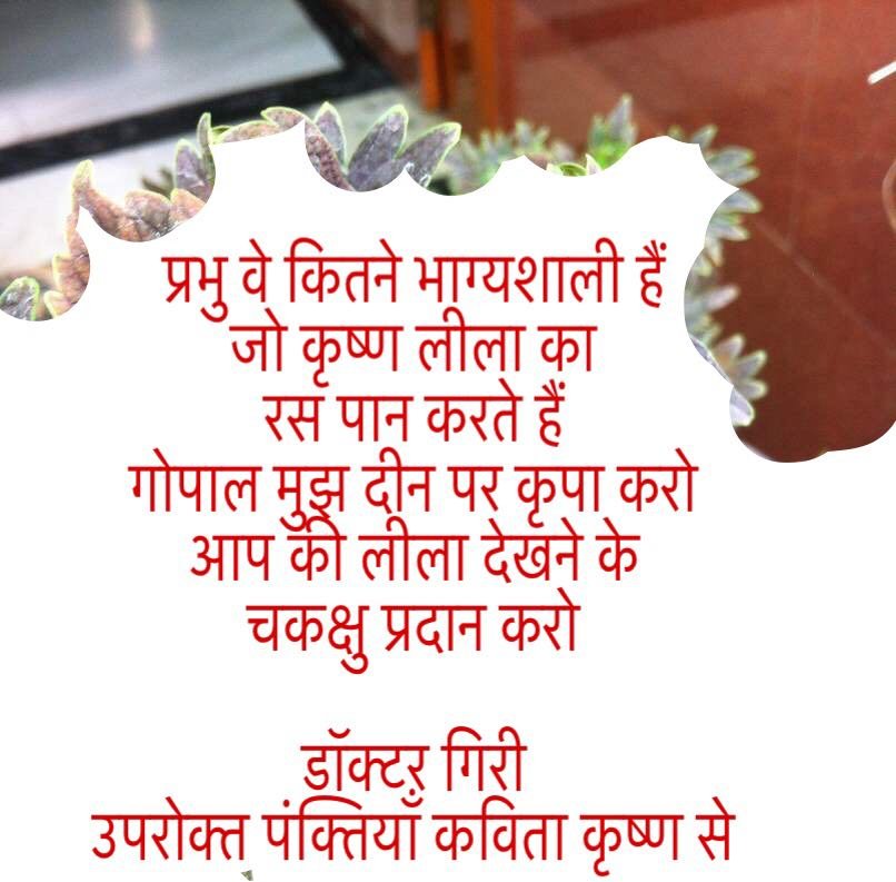 "KAVITA KRISHNA" is the journey of a spiritual quest.Here the poet DR. G.R. GIRI "GIRIVER" engage in a dialogue with the supreme power.Inspired by deep study of the BHAGWAD GITA AND THE BHAGWATMA,The Poet has been immersed in Krishna Consciousness.